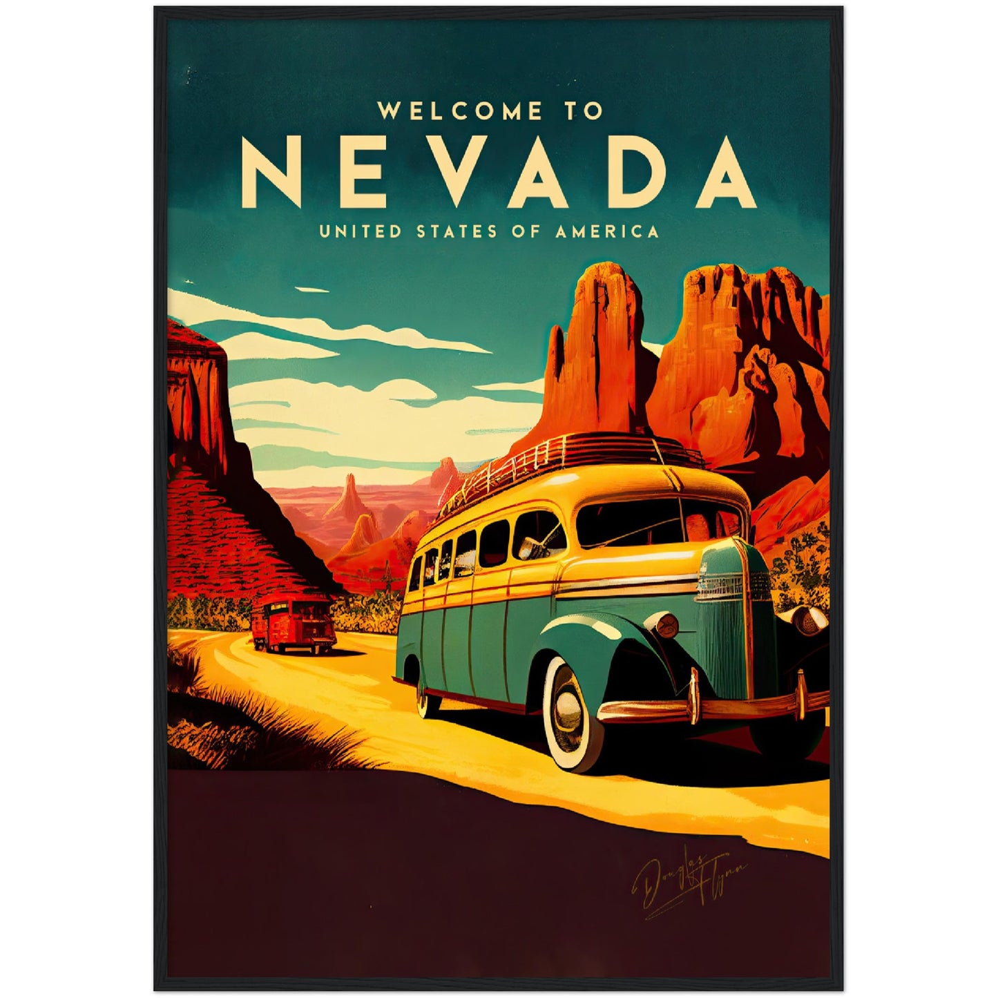 Douglas H. Flynn är en pseudonym som vi har valt att använda för att skapa en fördjupad känsla av retrokultur, något som återspeglas i hans verk. Alla våra motiv är märkta med hans tryckta signatur. Den märkningen betyder att motivet kommer från oss och endast finns i begränsad upplaga. Det är vår kvalitetsstämpel.