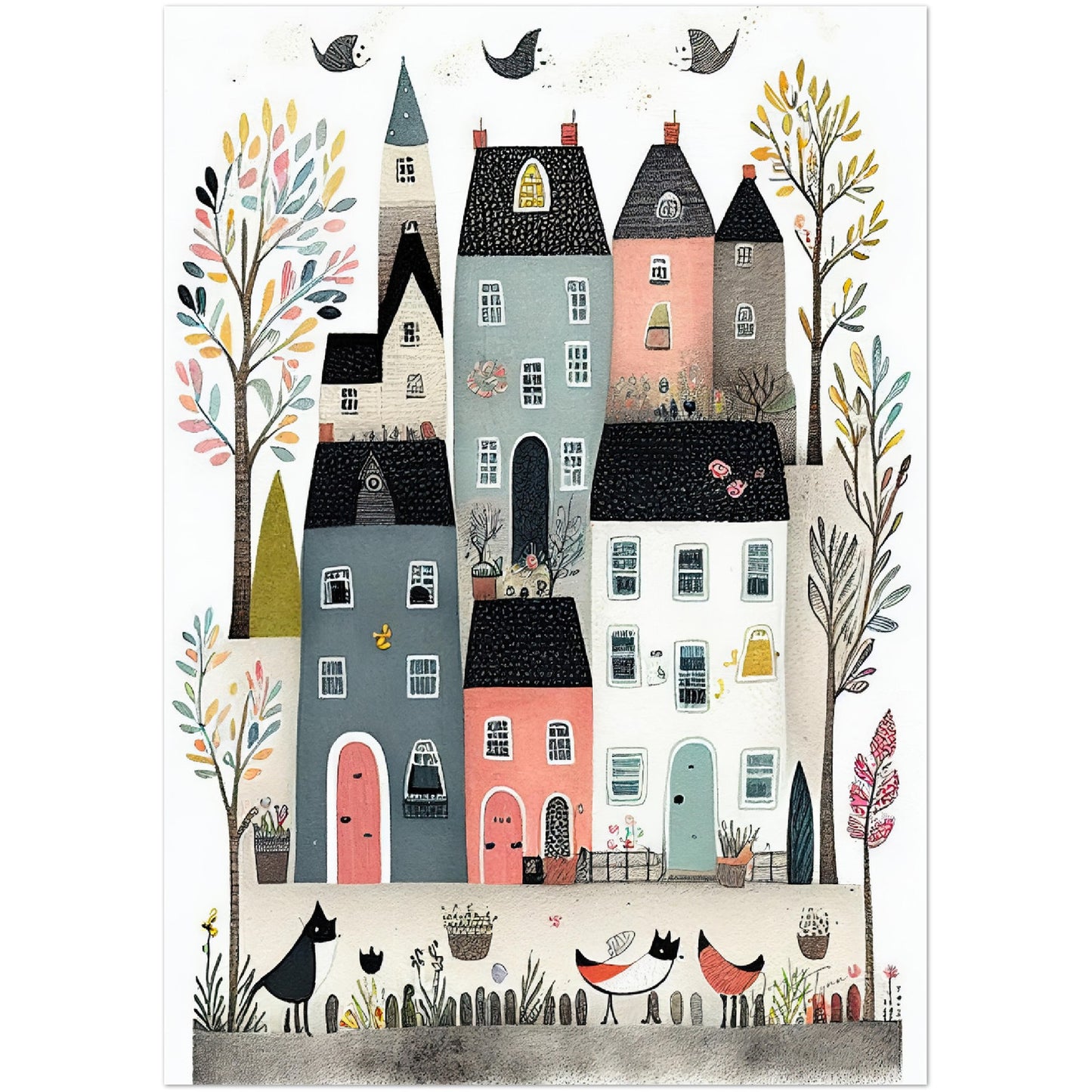 Unna dig en unik och vacker konstupplevelse med detta generativt framställda fantasifulla naivistiska motiv, tryckt med en avancerad digital teknik som fångar konstverket i dess fulla prakt. Sätt upp dem i sovrummet, lekrummet eller någon annan plats där barnen kan uppleva en värld av upptäckter och fantasifulla äventyr.