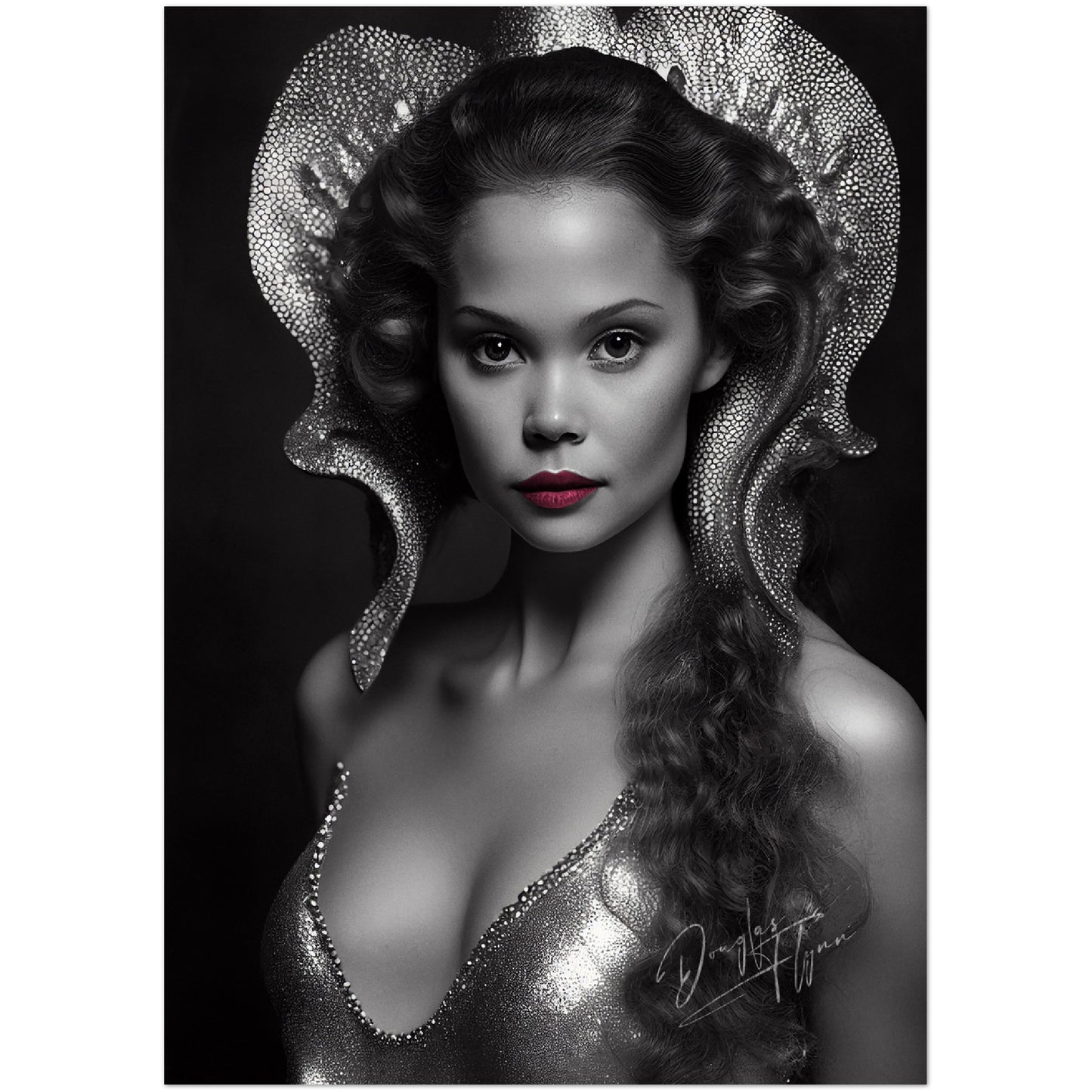 Upplaga: 1000 exemplar, Limited Edition Bronze | Stil: studiofotografiskt porträtt | Stilperiod: 1990-tal | Teknik: Digital, generativ AI | Upphov: Douglas H. Flynn/UnrealRetro